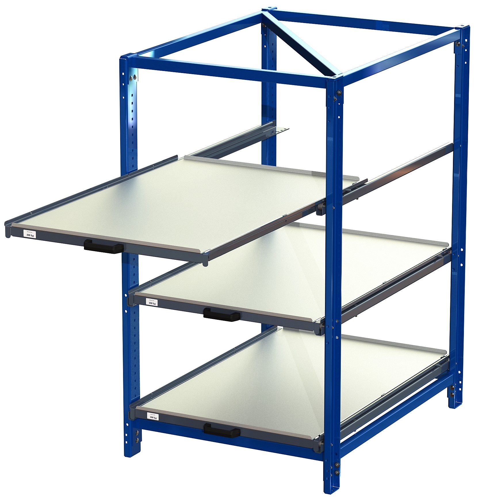 Industribyrå utan tippskyddslås, kortsidehanterat, 70% utdragskapacitet, 200 kg lastkapacitet, 3 hyllplan Industribyrå utan tippskyddslås, kortsidehanterat, 70% utdragskapacitet, 200 kg lastkapacitet, 3 hyllplan