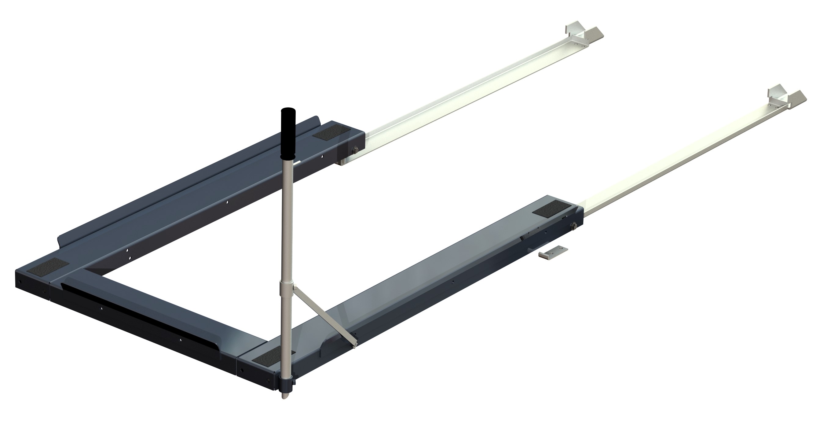 Golvmonterade baklastade utdragsenheter för nätcontainer med en lastkapacitet på upp till 1000 kg är långsideshanterade och passar under pallställ. De är kompatibla med nästan alla typer av pallställ, men kan även användas som fristående enheter. Enheten levereras med 13-4 fotlås inkluderat. De är fixerade vid golvet med bultar genom golvskenor, vilka fungerar som styrskenor för den övre ramen som rullar på kraftiga kullager bak och robusta pallhjul fram. Att kunna dra ut enheterna ur pallstället möjliggör en säker och enkel åtkomst till lagrade produkter. En baklastad enhet används när du lastar pallen från ena sidan av pallstället, till exempel i en truckgång, och plockar gods manuellt från andra sidan på en trafikfri arbetsyta. Denna lösning skapar ett effektivt arbetsflöde, förbättrad ergonomi och högre säkerhet i lagermiljö. Ergonomi och tidsbesparing är alltid en central del av Smart Storing-designen, och varje modell använder rätt antal och storlek på kvalitetskullager för att vara stark, pålitlig och enkel att hantera. En automatisk säkerhetsspärr låser enheten när den är inskjuten, vilket gör den stabil vid lastning och förhindrar att den oavsiktligt skjuts ut. Hörnplattor håller nätcontainrar stabilt på plats, vilket gör lösningen både säker och flexibel.