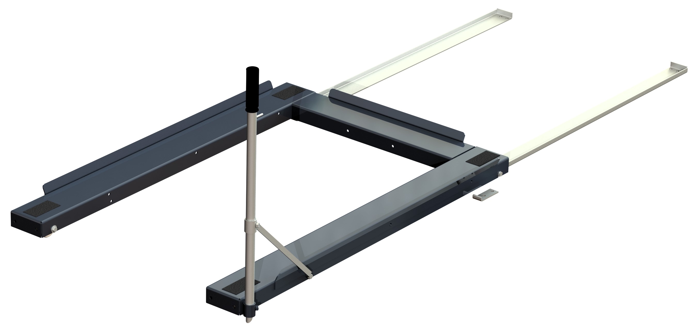 Golvmonterade utdragsenheter passar under pallställ och är kompatibla med nästan alla typer av pallställ, men kan även användas som fristående enheter. De är fixerade vid golvet med bultar genom golvskenor, vilka fungerar som styrskenor för den övre ramen som rullar på kraftiga kullager bak, och kraftiga hjul fram. Att kunna dra enheterna ut ur pallstället möjliggör en säker och enkel åtkomst till lagrade produkter! Cost-saving ergonomics are a primary consideration with FM units, as with all Smart Storing designs. Varje modell använder rätt storlek och antal av kvalitetskullager, så att de är starka, pålitliga och lätt glider ut och in. Guide rails ensure the units stay in line when pulled out, and can be pushed back in without effort. En säkerhetsspärr låser automatiskt när enheten är i inskjutet läge. Denna ser till att enheten är låst och stabil när du lastar pallen med t.ex. en truck. Den förhindrar också enheten från att oavsiktligt åka ut från den andra sidan av pallstället. (Den här funktionen är särskilt viktigt när du använder baklastade enheter eller enheter placerade i ett dubbelrack, där de kan köras på bakifrån vid lastning av motsatt enhet).