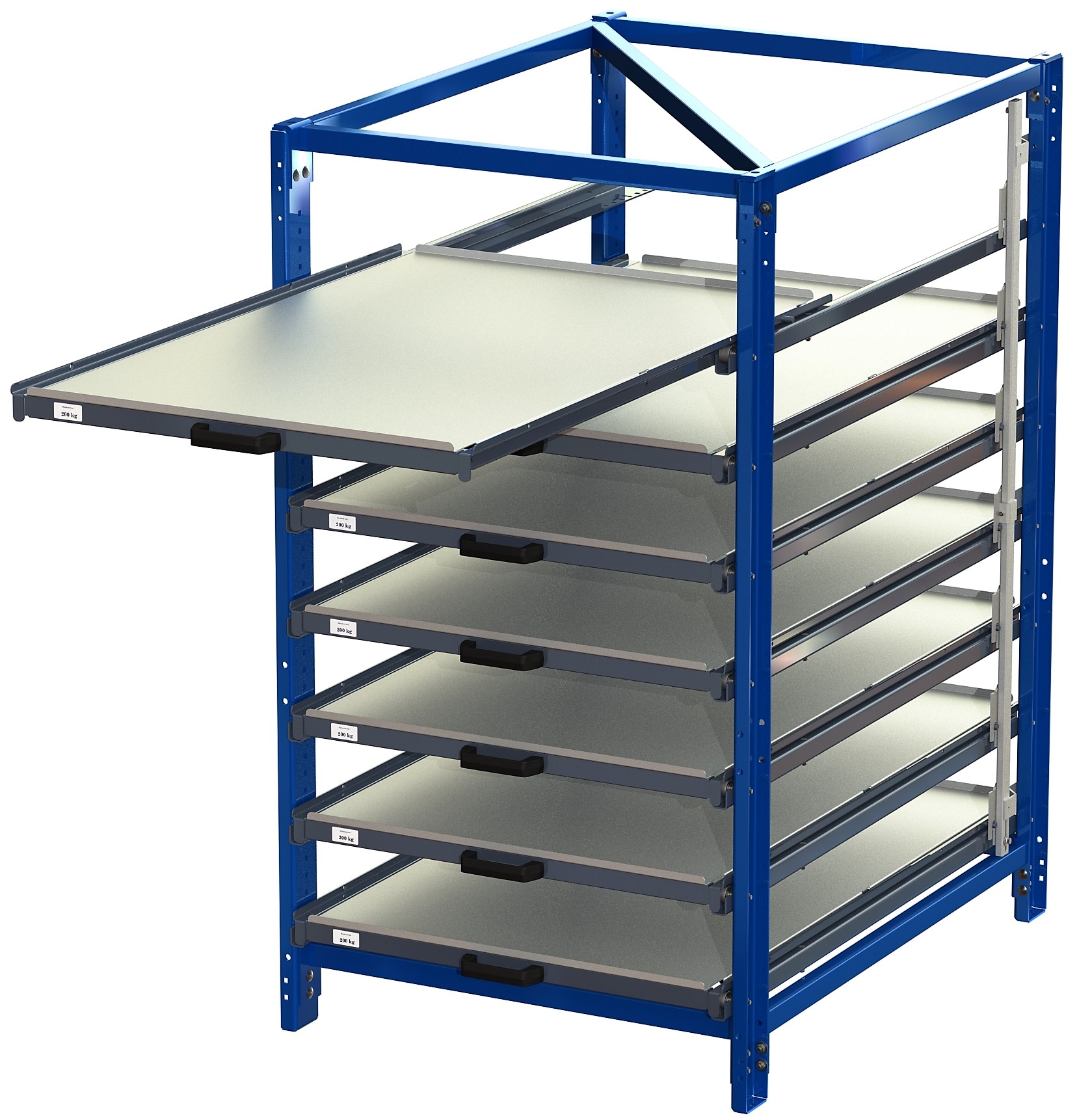 Industribyrå med tippskyddslås, kortsidehanterat, 70% utdragskapacitet, 200 kg lastkapacitet, 7 hyllplan