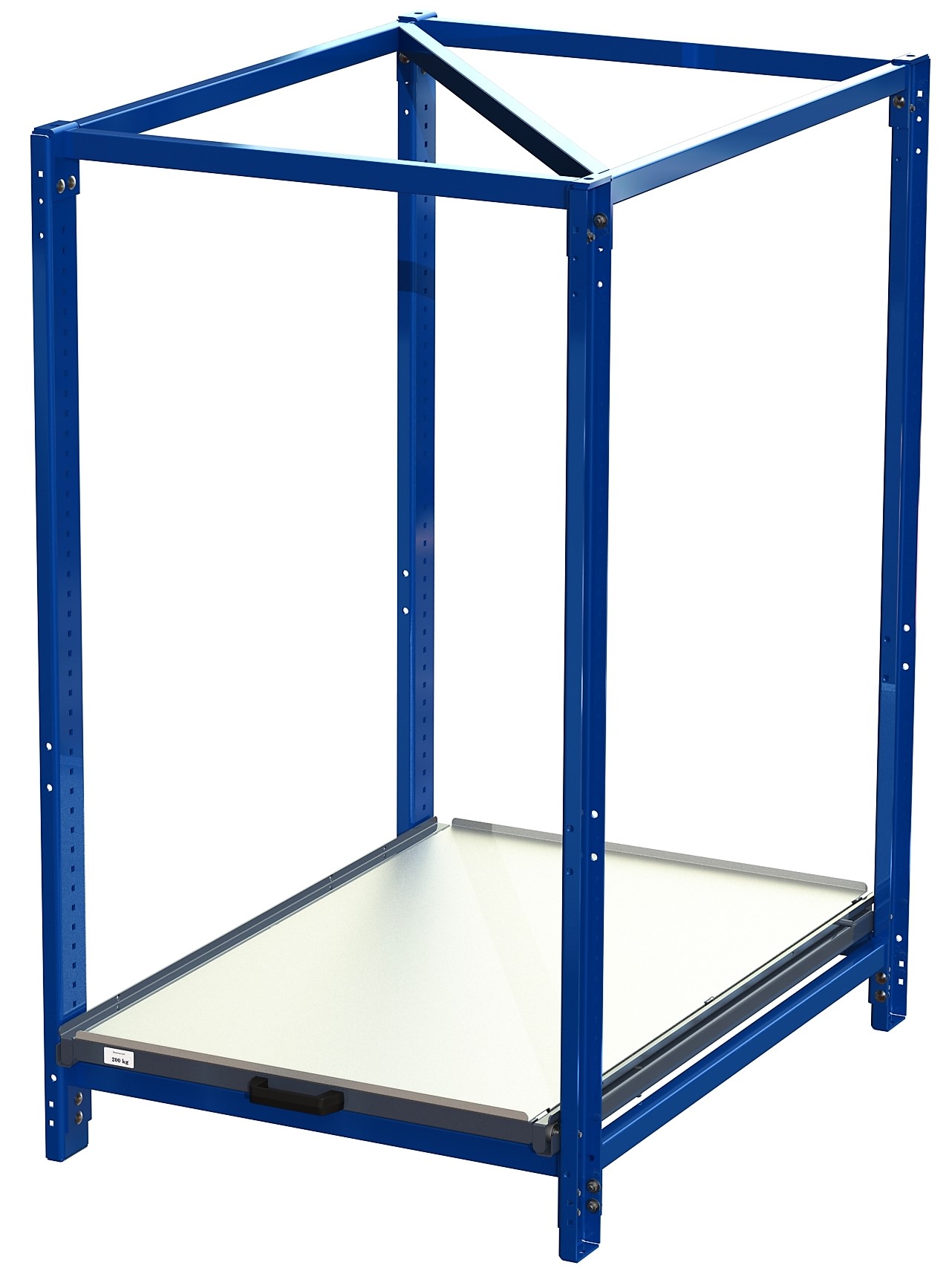 Industribyrå utan tippskyddslås, kortsidehanterat, 70% utdragskapacitet, 200 kg lastkapacitet, 1 hyllplan