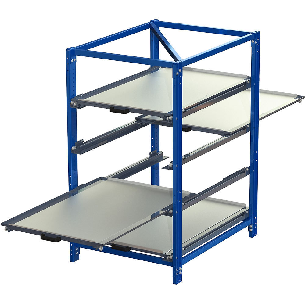 Industribyrå tvåvägs, kortsidehanterat, 70% utdragskapacitet, 200 kg lastkapacitet, 4 hyllplan