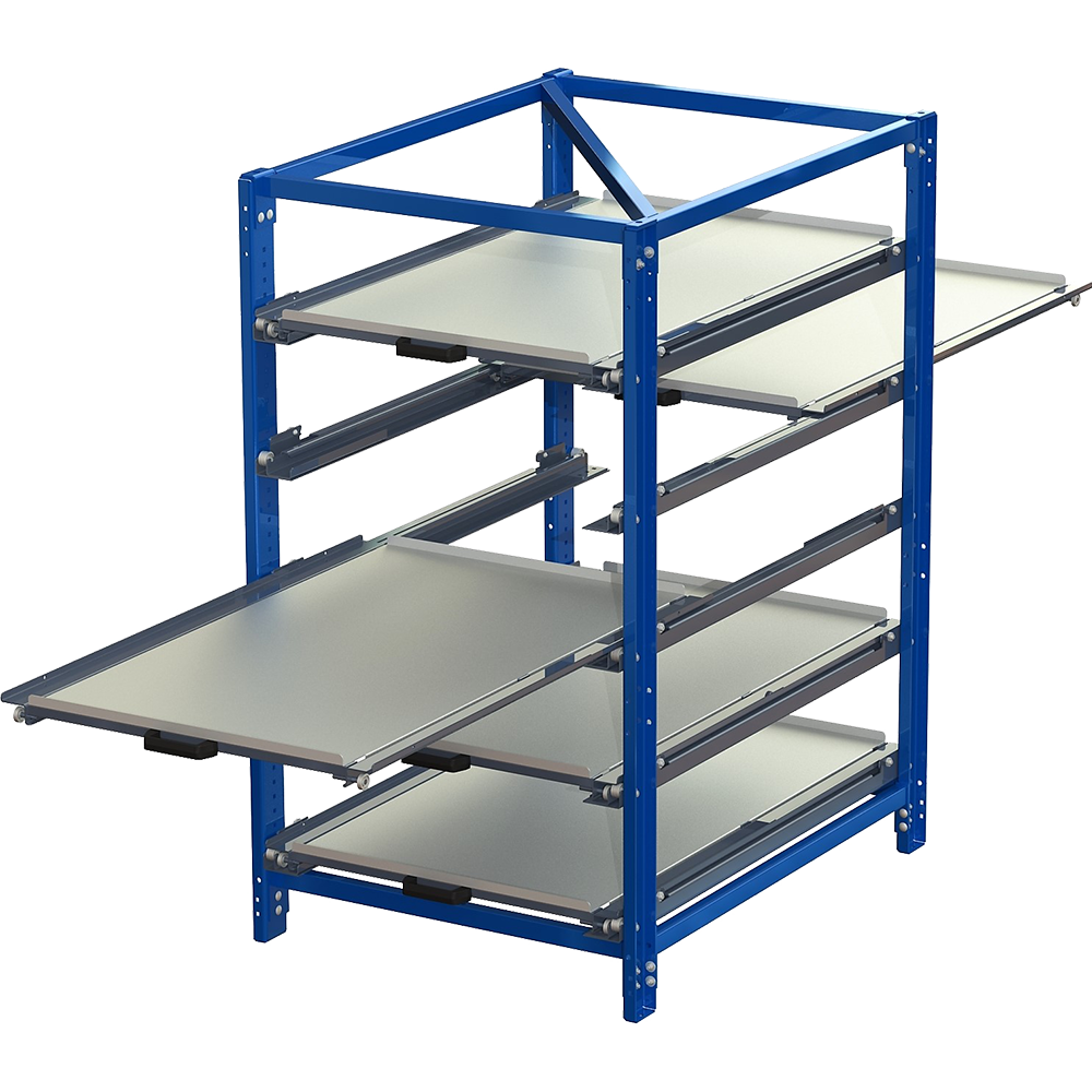 Industribyrå tvåvägs, kortsidehanterat, 70% utdragskapacitet, 200 kg lastkapacitet, 5 hyllplan